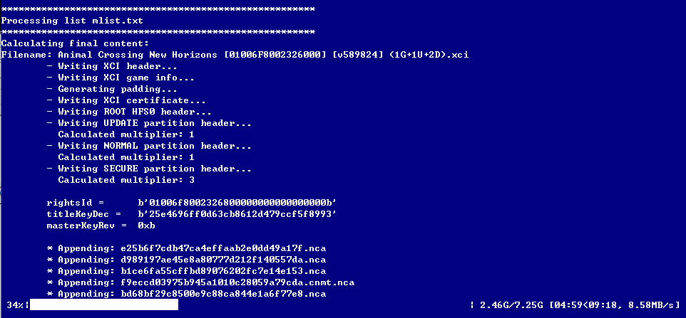 3) 대상 XCI 롬(1.2.1) 드레그로 설정, 엔터
